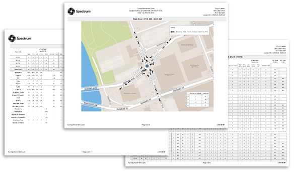 automatically calculate heavy percentages, peak hour factors (by intersection, approach and turn) and peak hour periods.